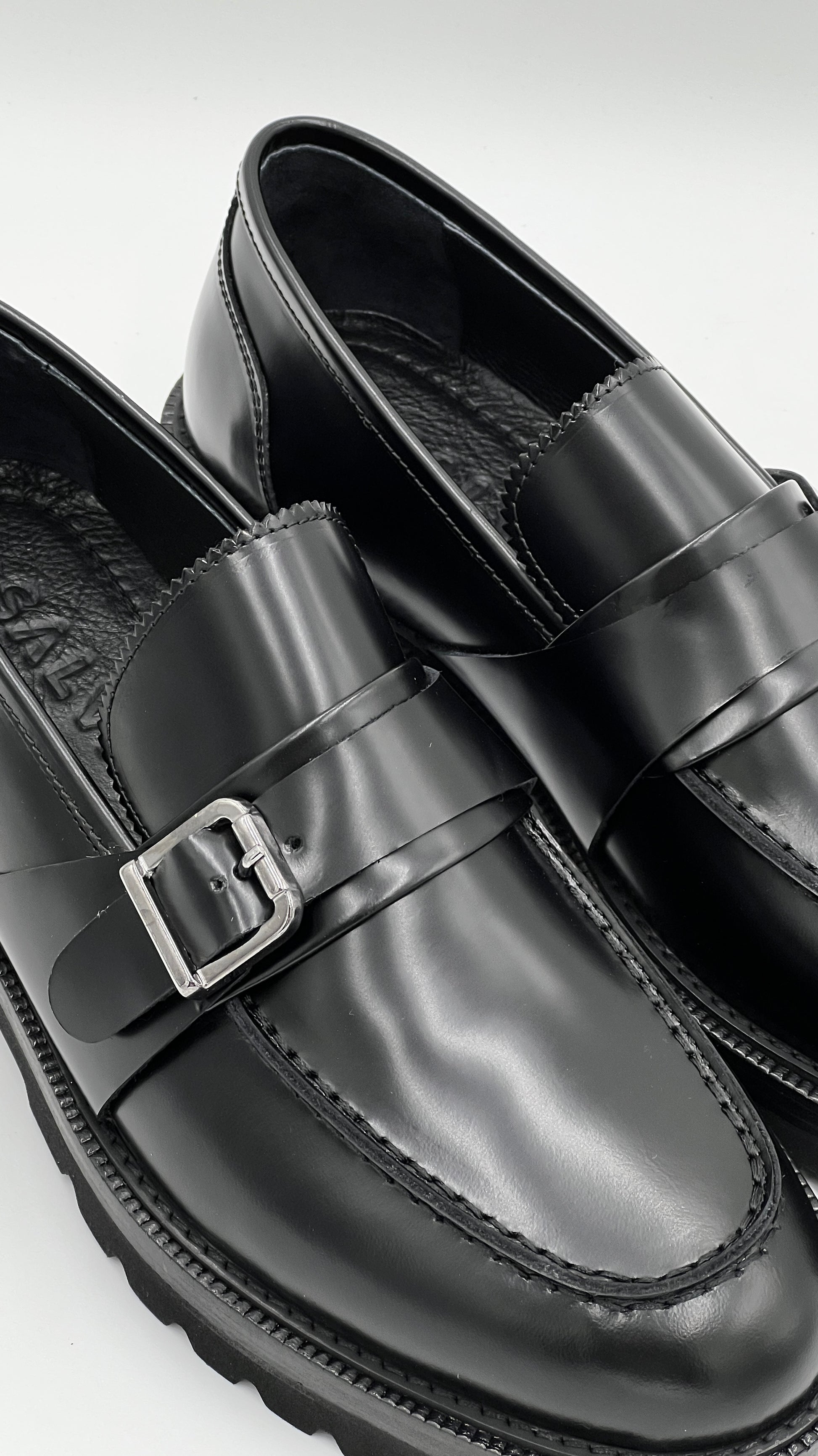 El Yapımı Açma Deri Loafer Kalın Taban Kösele Eva
