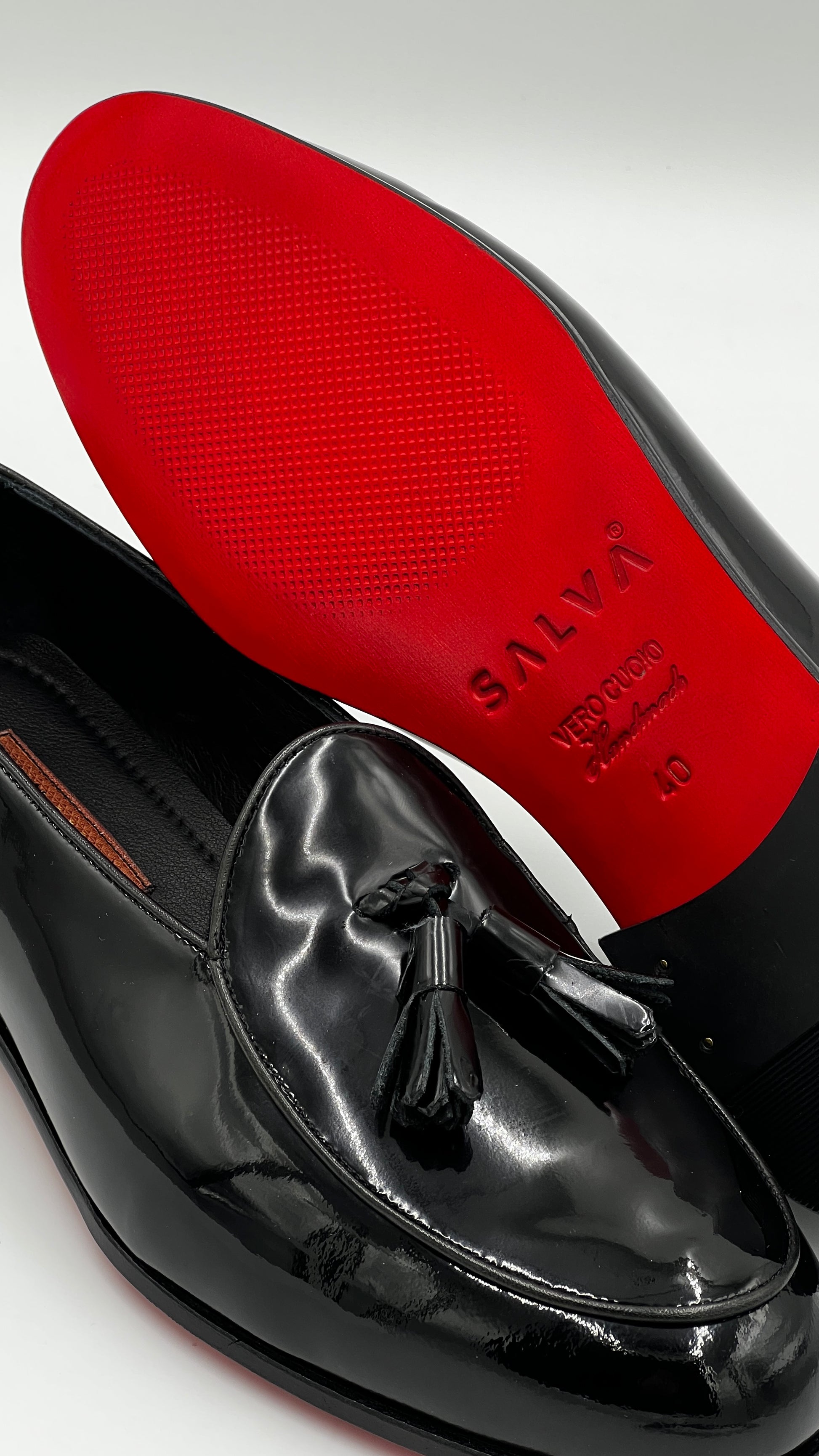 El yapımı Derin Siyah Deri Klasik Ayakkabılar Özel Tabanlı, Rugan Deri . El yapımı Siyah klasik stile modern bir yorum, kapak kaliteli deriden el yapımı olup cesur bir renk kombinasyonuna sahiptir. Tüm Salva ayakkabıları dayanıklı, deri tabanlara ve cilalı klasik ayakkabı Loafer sahiptir. El yapımı Siyah Rugan ile klasik stile modern bir yorum, ayak izinizin benzersiz olmasını sağlar, cesur ve sofistike renk paleti ile her görünümü tamamlar.