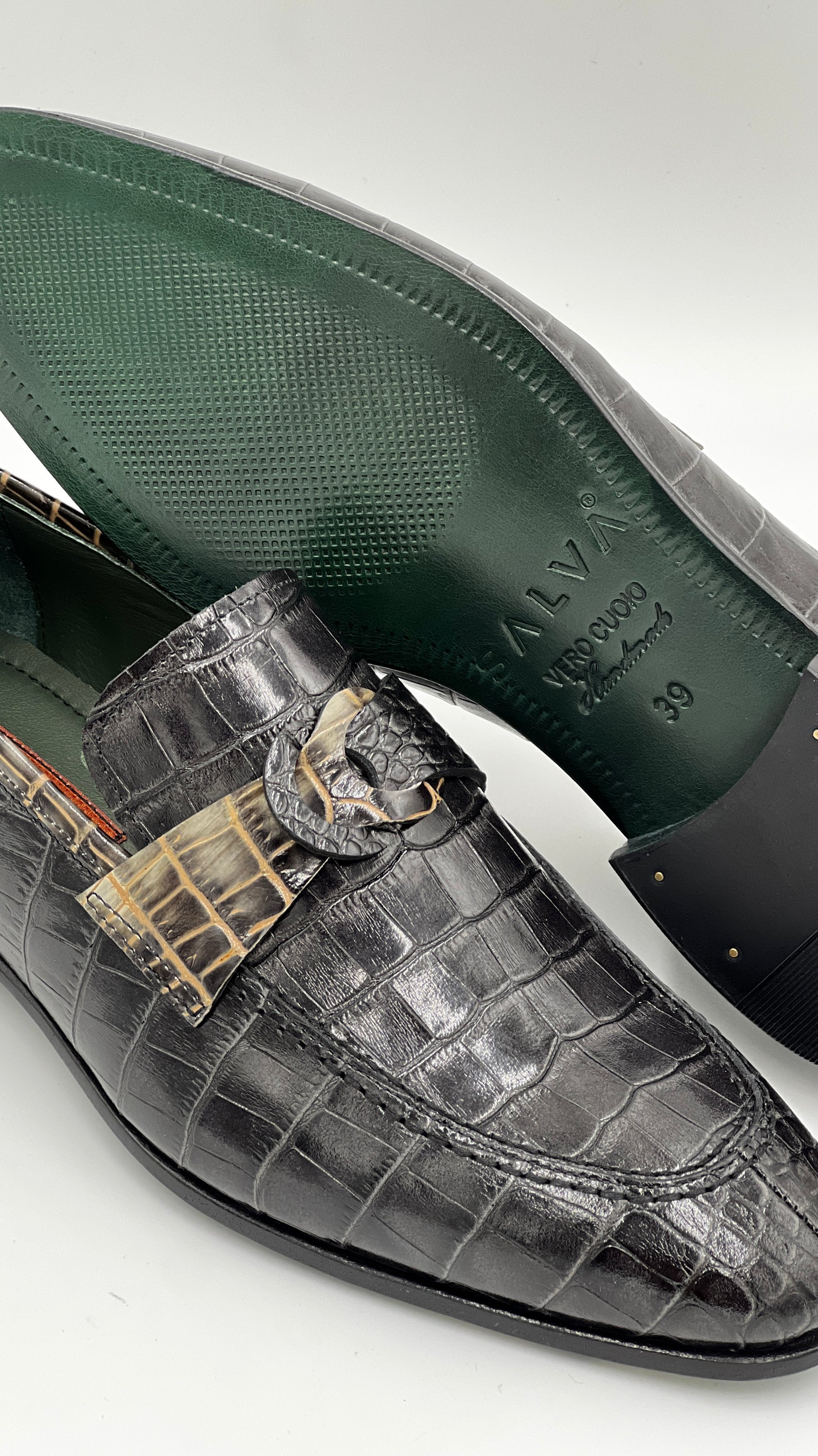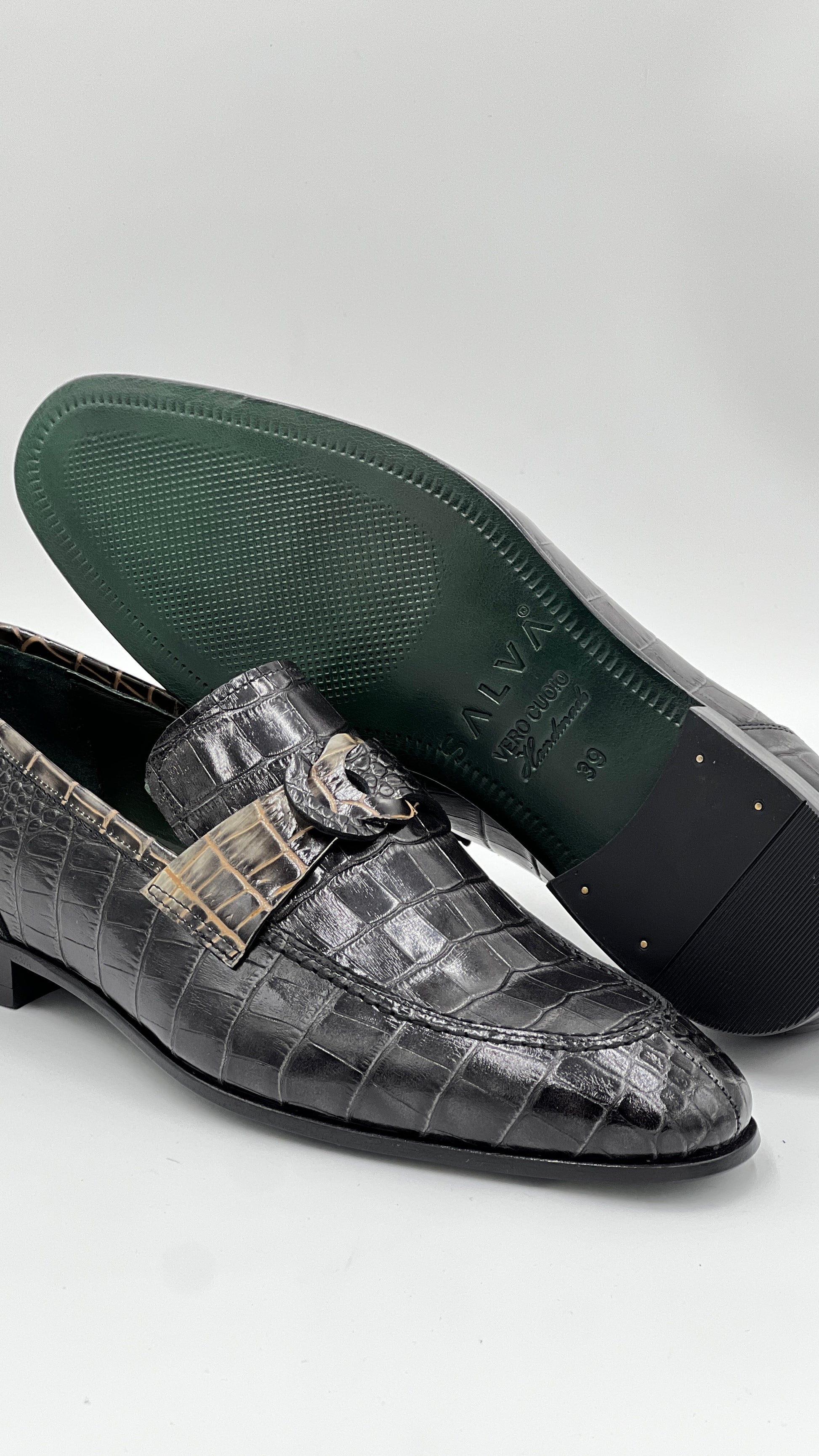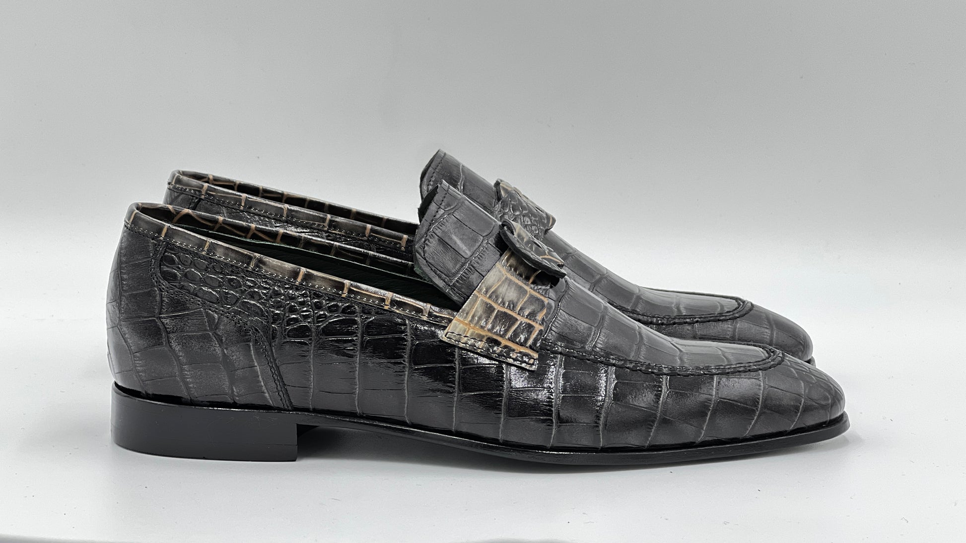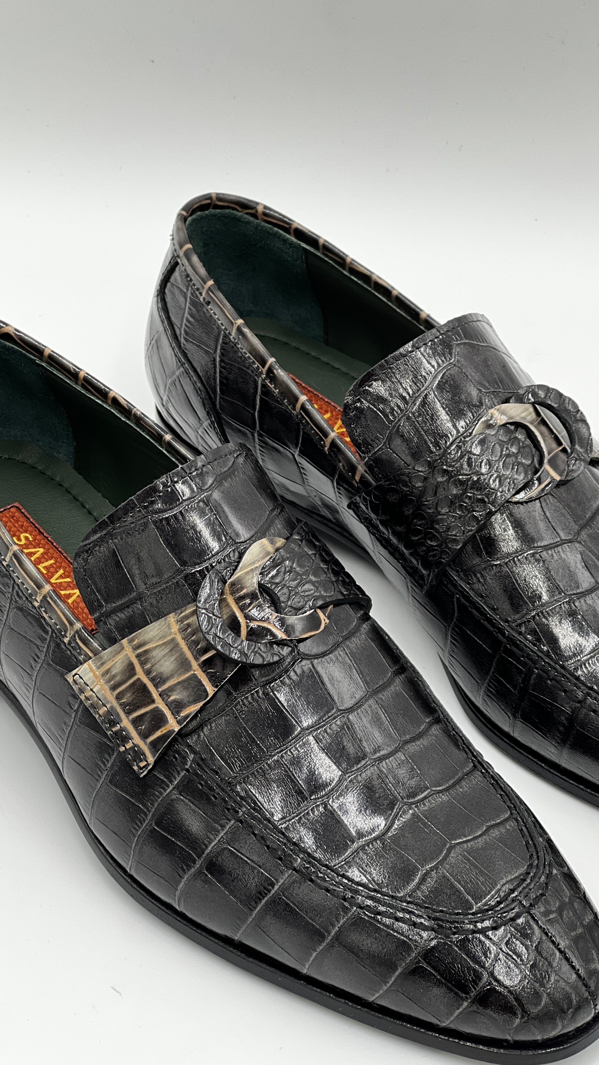 Siyah Kroko Baskı Yeşil Kösele Taban Erkek Loafer Ayakkabı