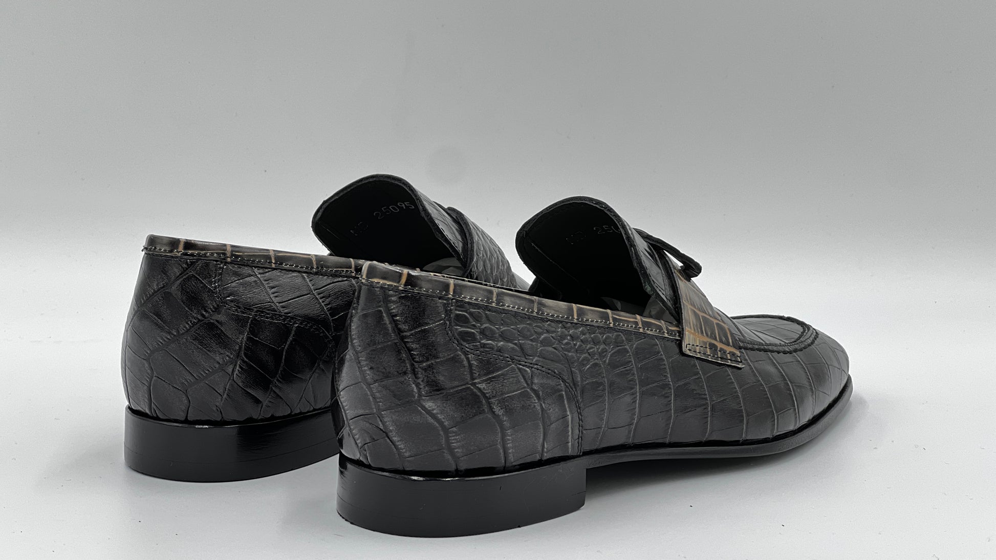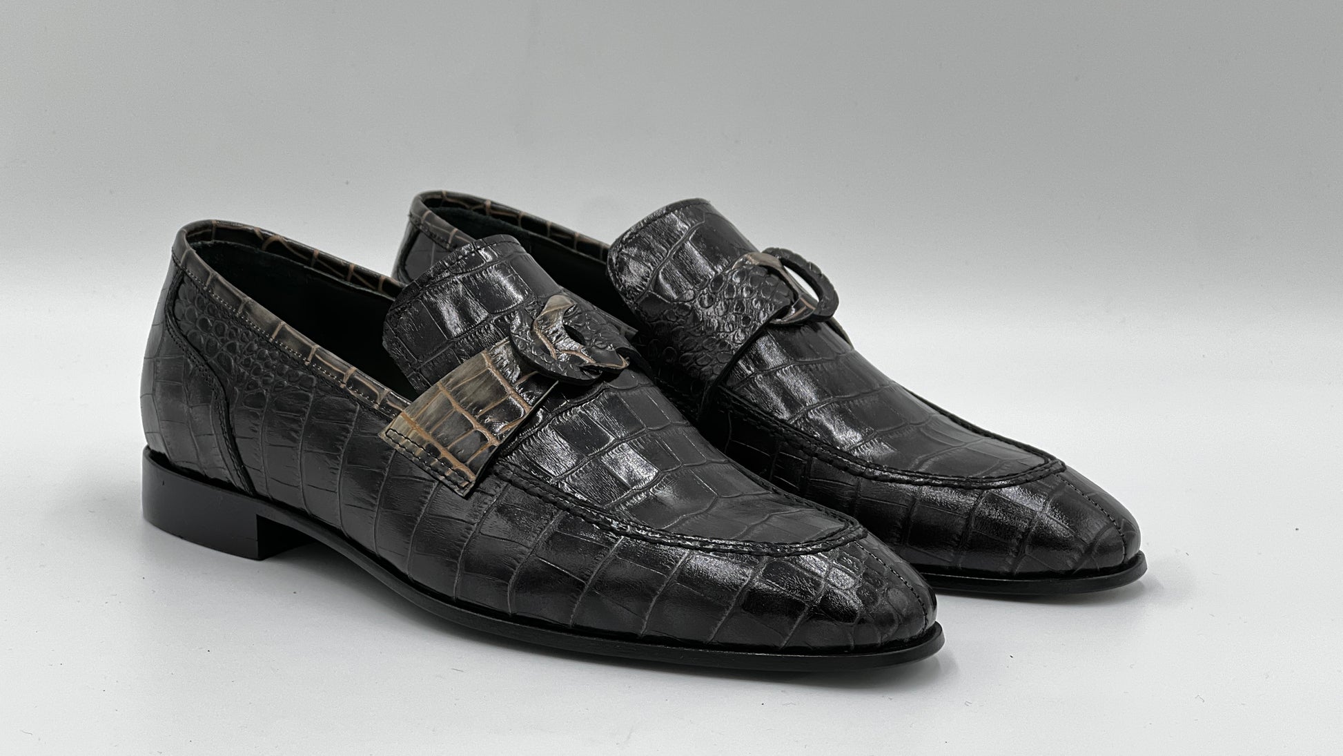 - Siyah Kroko Baskı Loafer Ayakkabı