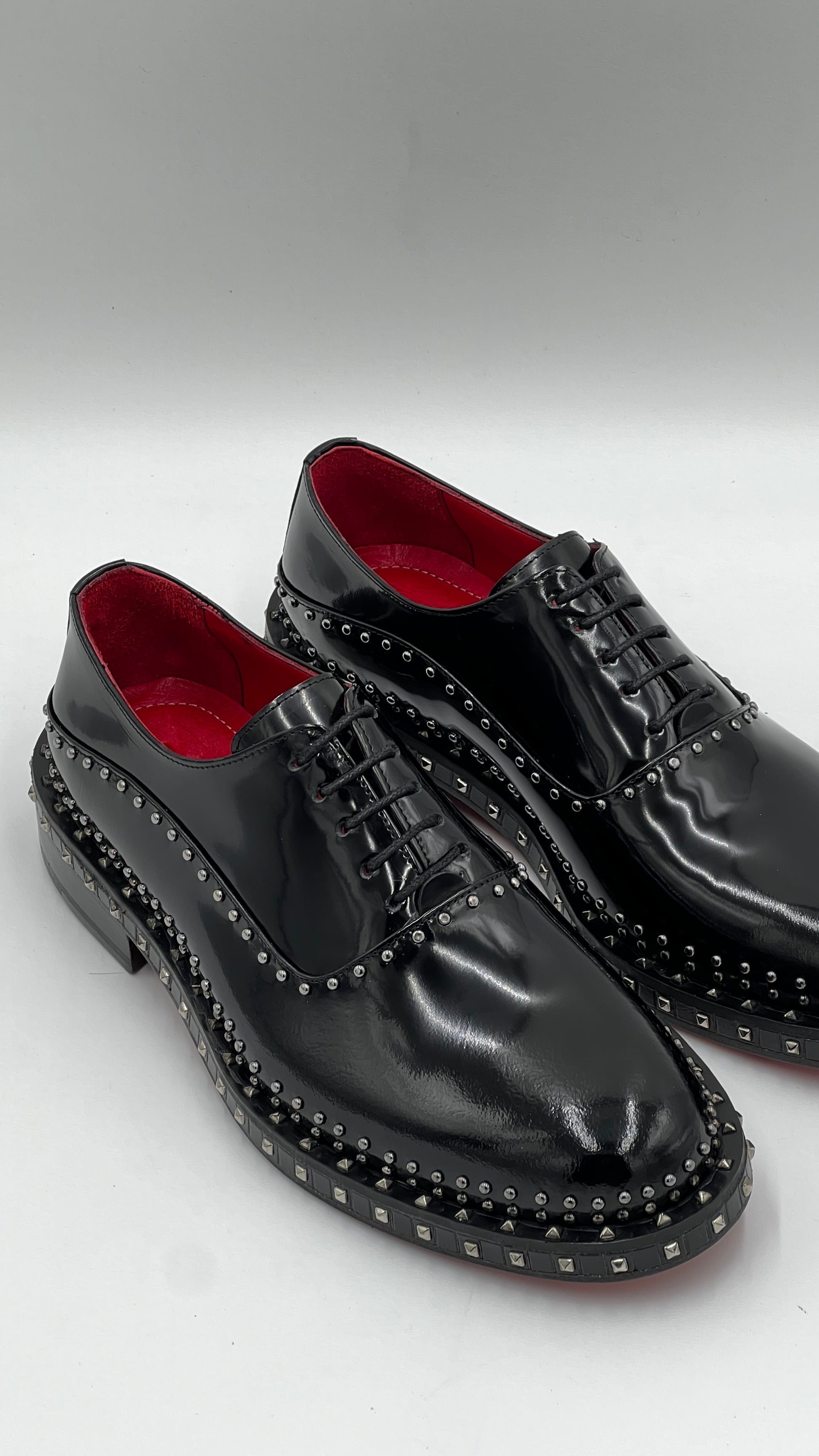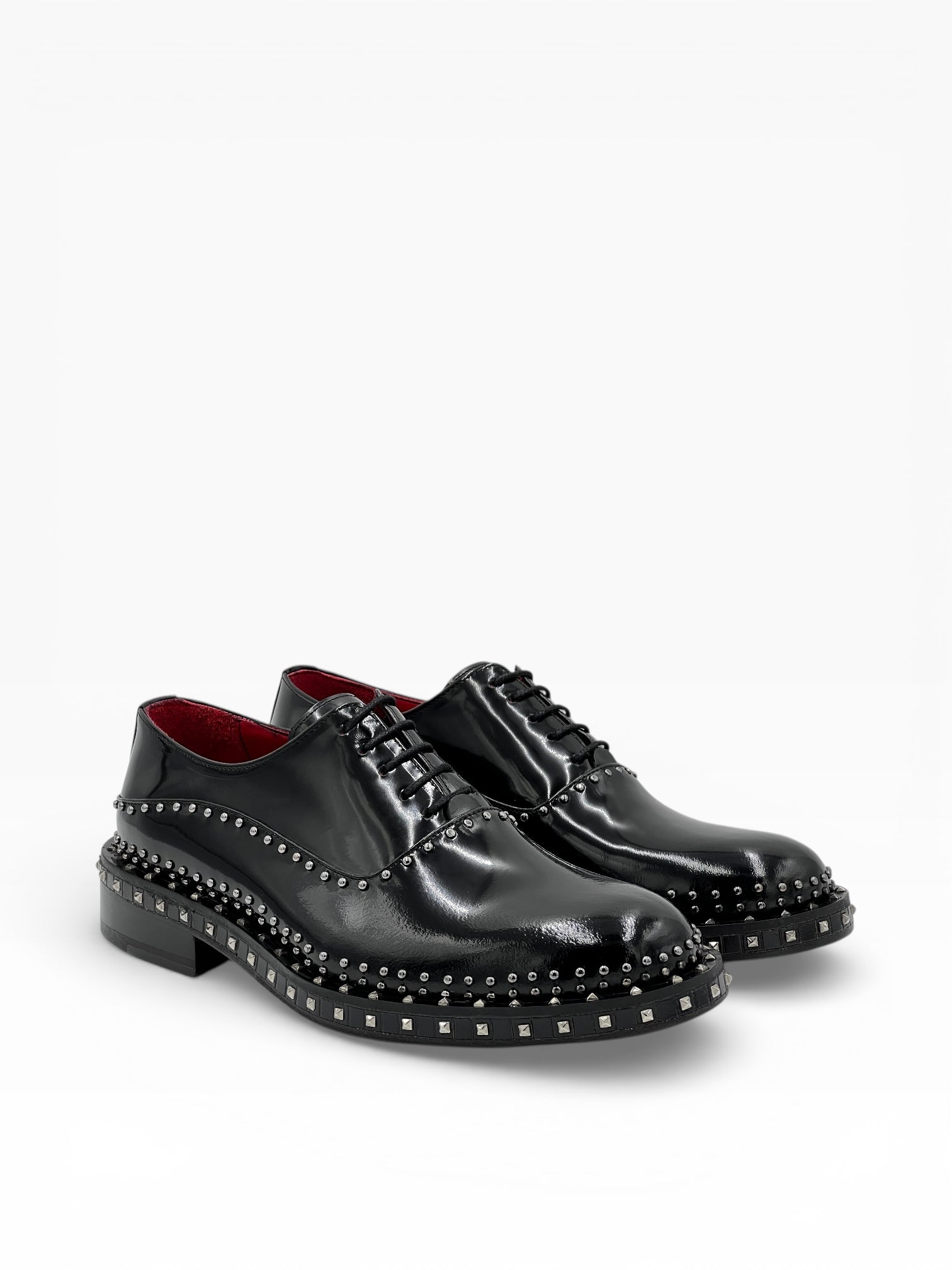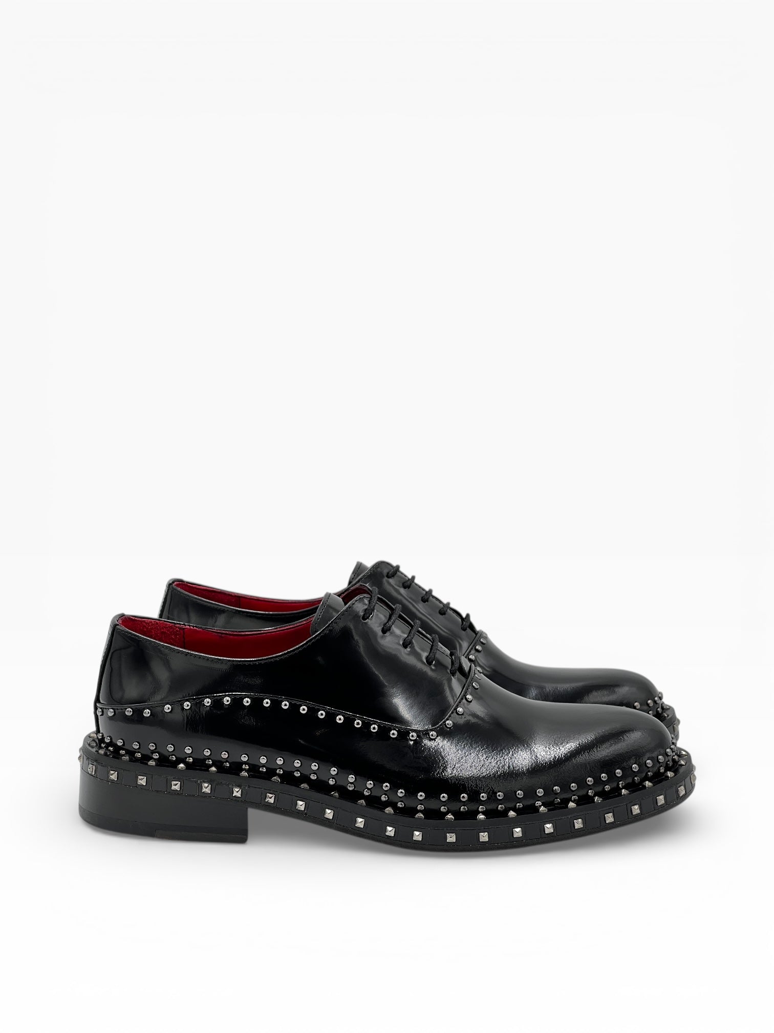 Siyah Taşlı Rugan Bağcıklı Kırmızı Kalın Kırmızı Kösele Erkek Ayakkabı